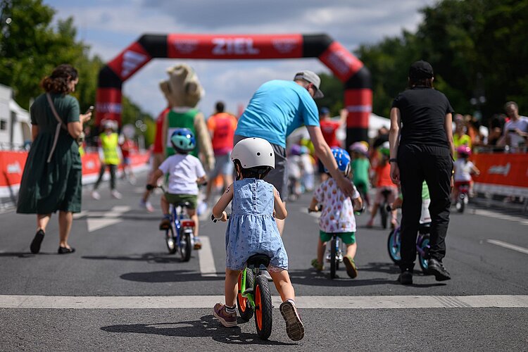 Die Maskottchen Flöwi (von Generali) und Fridolin (vom Organisator SCC EVENTS) schickten zuerst die ganz, ganz jungen Zweiradfreund:innen auf ihren Weg. Ob auf dem Fahrrad (von zwei bis vier Rädern), Laufrad oder Roller alle kamen mit Freude ins Ziel. Bei den folgenden Altersklassen beschränkten sich die Vehikel auf reine Fahrräder, der Stolz war nicht minder - eine Urkunde und Medaille inklusive. Insgesamt starteten knapp 250 Nachwuchsathlet:innen bei den Kids & Youth Rennen.