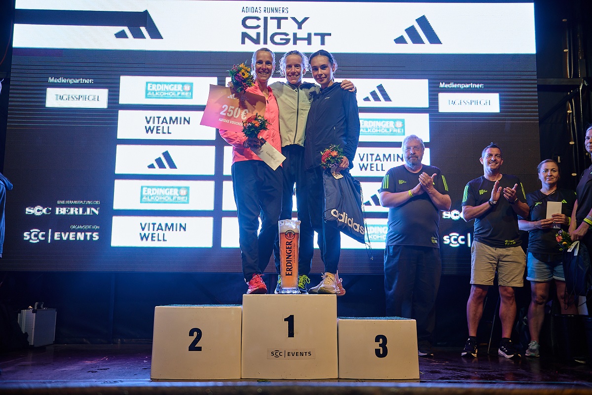 Die Belgierin Hanne Verbruggen (mittig) gewinnt bei der adidas Runners City Night | © SCC EVENTS_Steffen Hartz